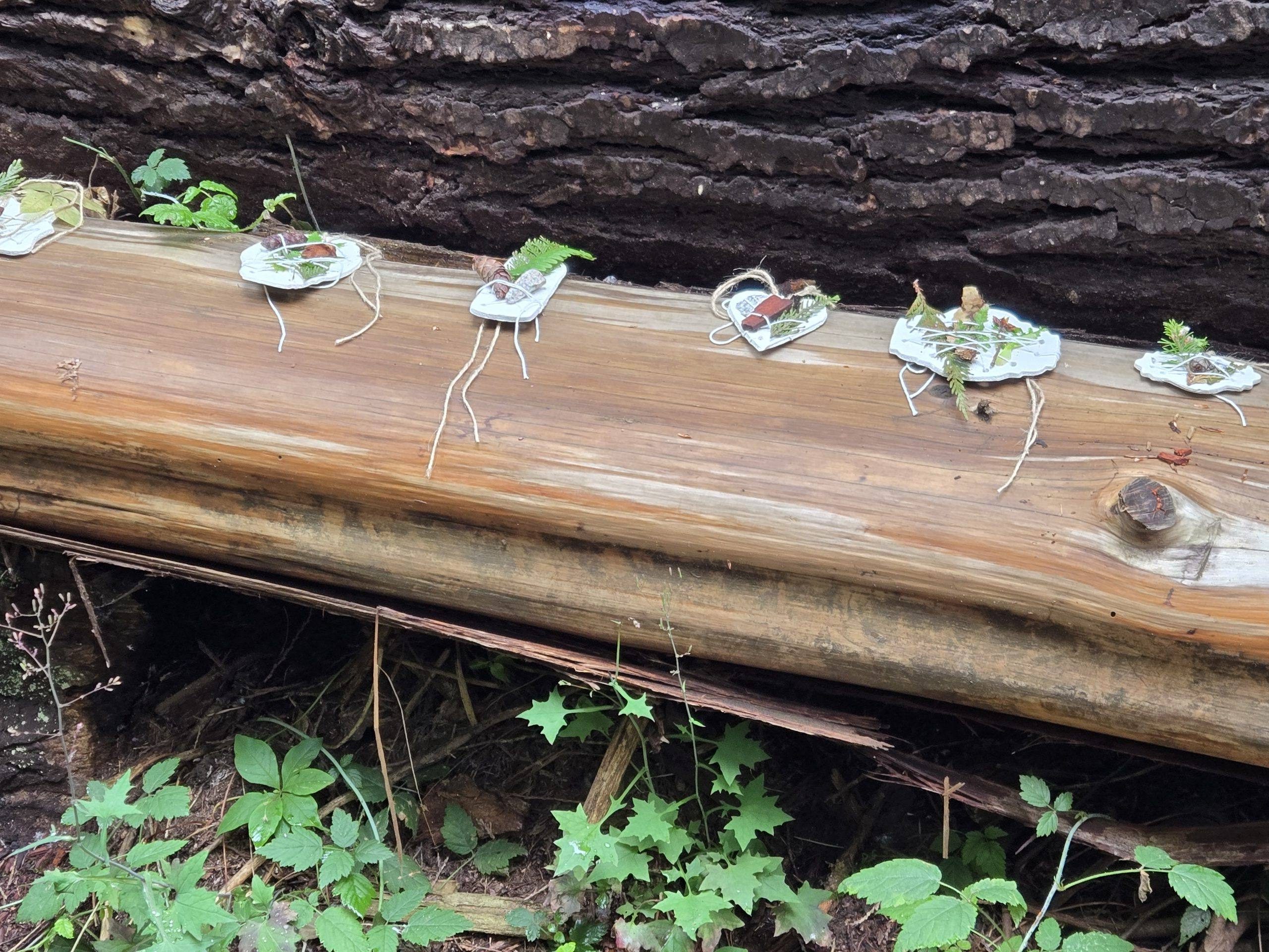 On the right, we created these mementos from a clay base provided and used our creativity to ad in some leaves, ferns, branches and other things found in the forest.